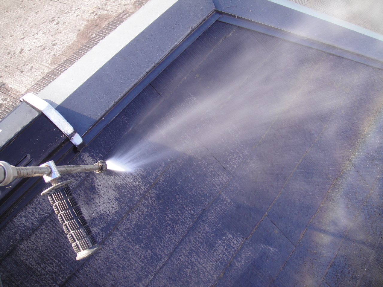高圧洗浄機で洗浄をして苔や汚れを落とします。
